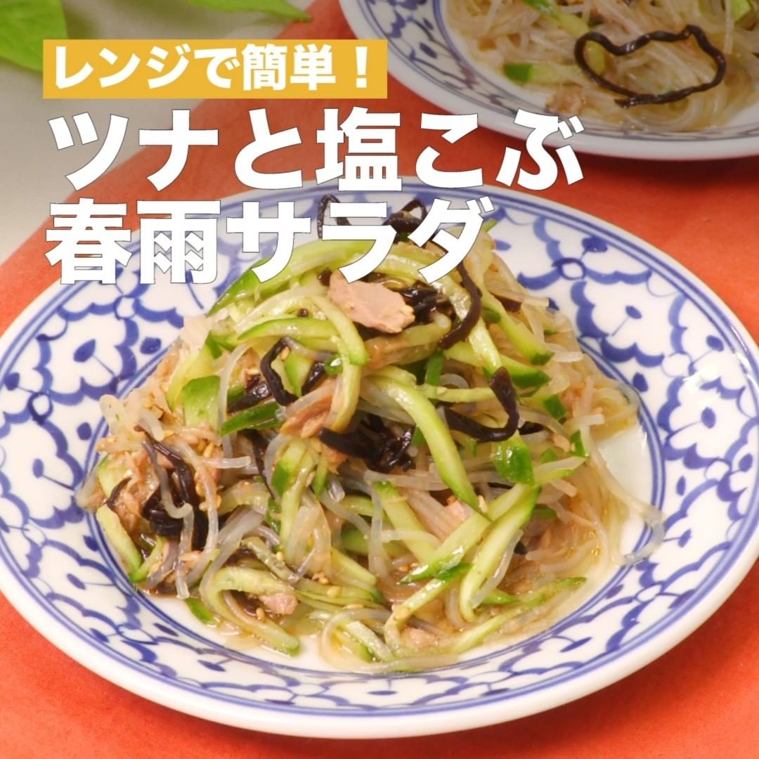 ⑨<レンジで簡単!ツナと塩こぶ春雨サラダ>