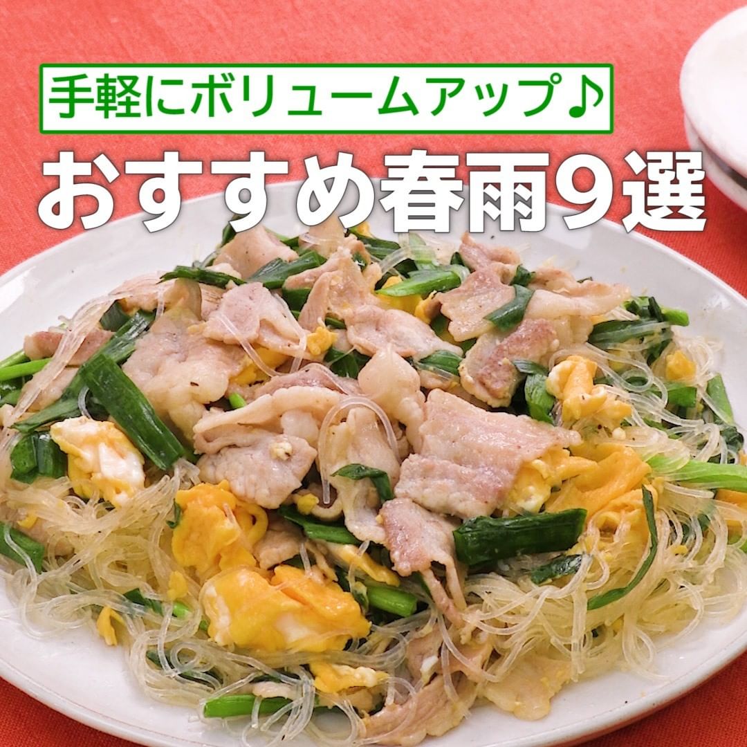 ①<ごはんにぴったり!ニラ玉豚バラ春雨>