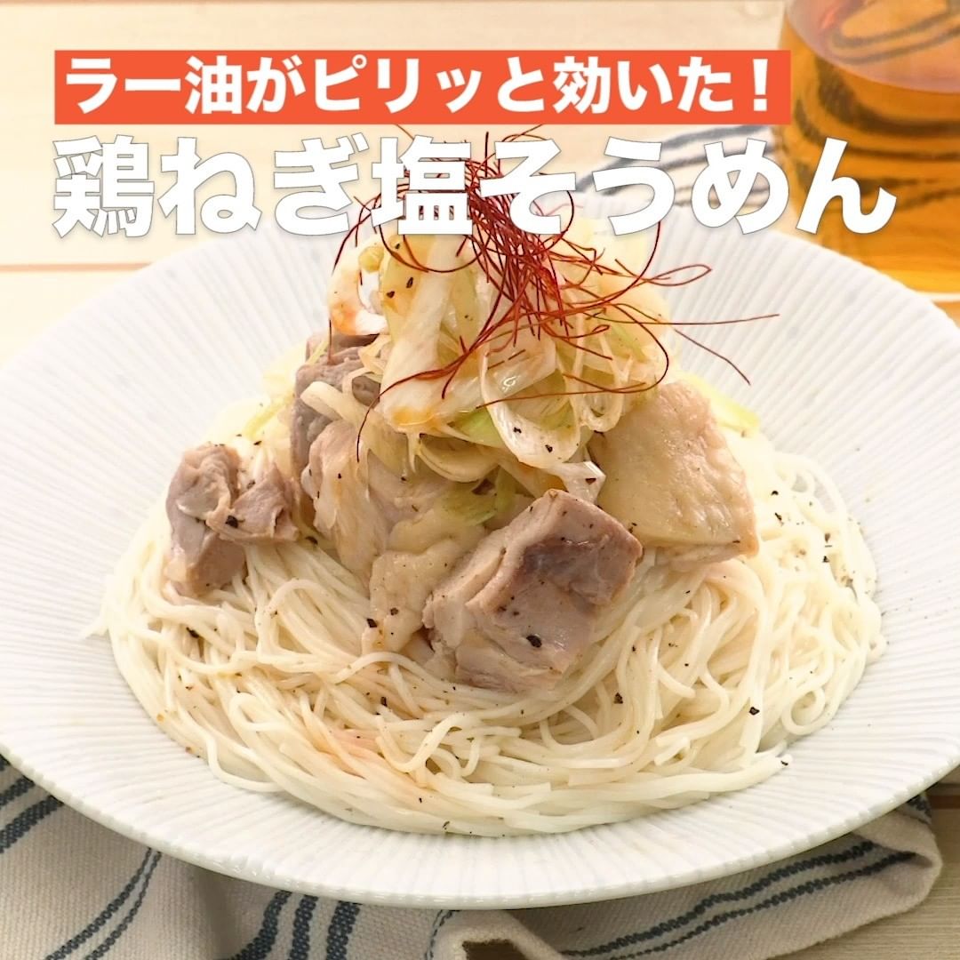 ②<ラー油がピリッと効いた!鶏ねぎ塩そうめん>