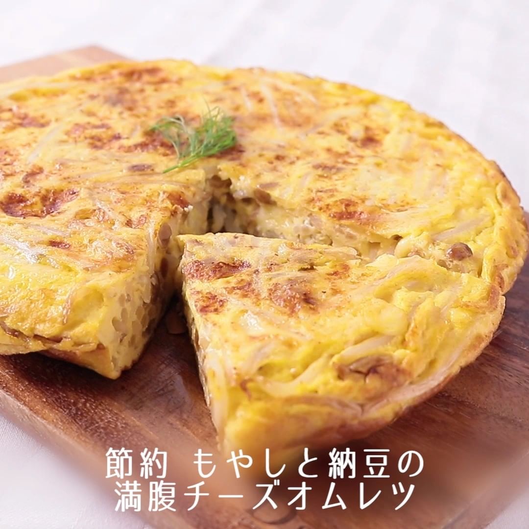 ④節約 もやしと納豆の満腹チーズオムレツ
