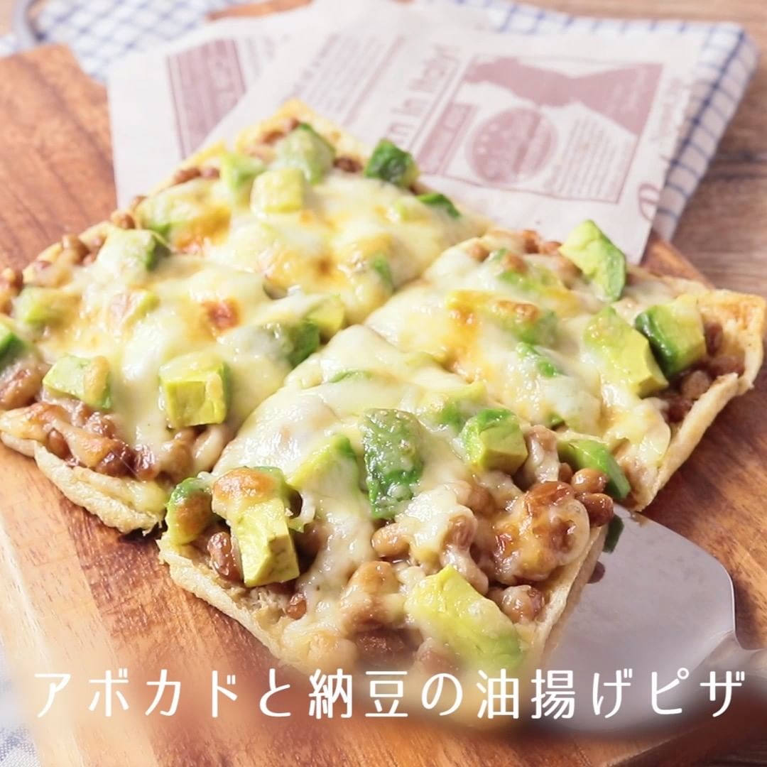 ⑤アボカドと納豆の油揚げピザ