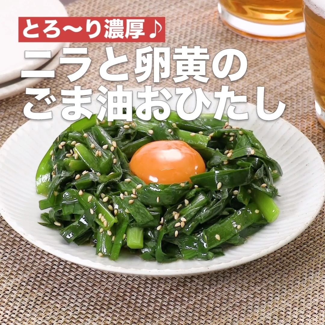 ⑦<とろ〜り濃厚♪ニラと卵黄のごま油おひたし>