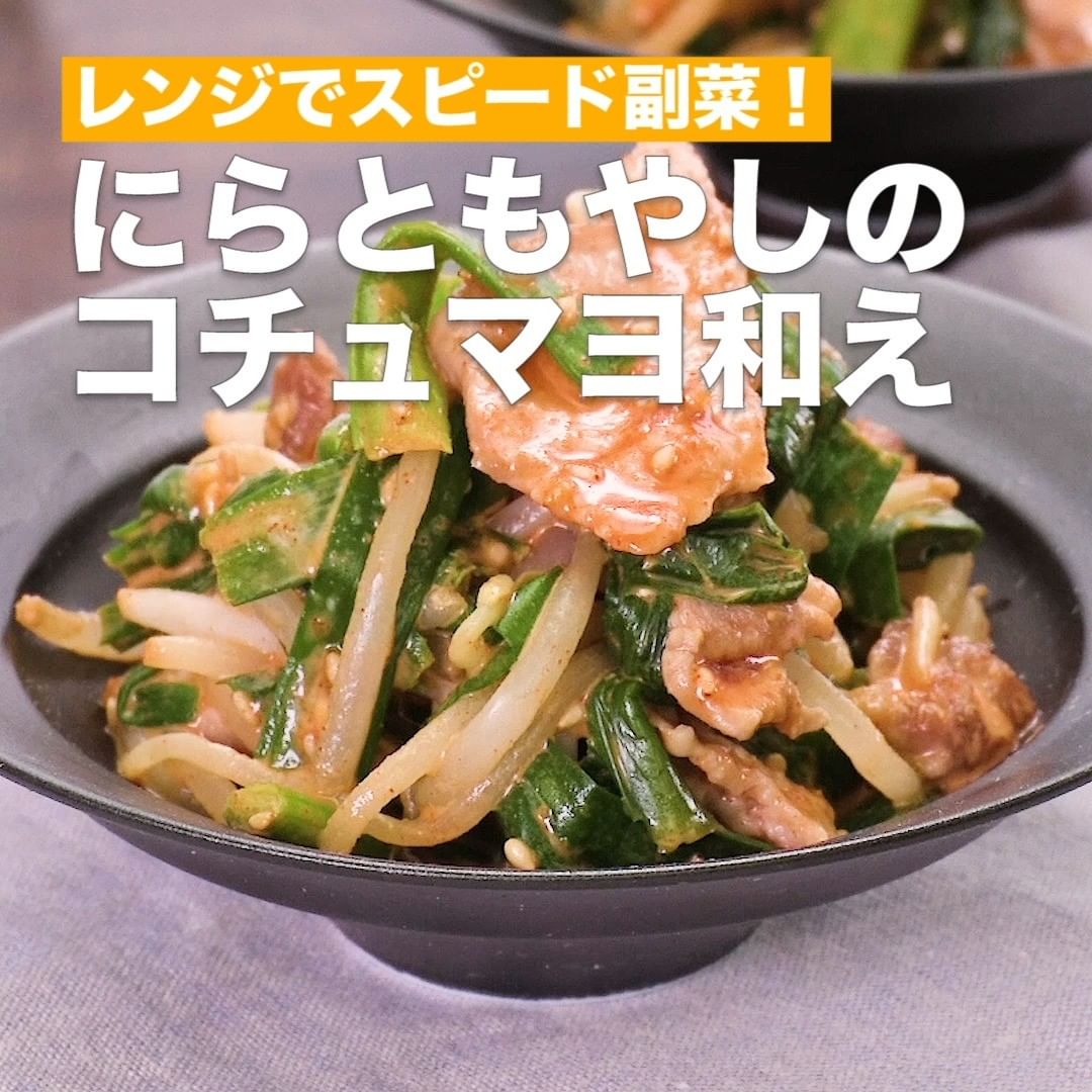 ⑧<レンジでスピード副菜!にらともやしのコチュマヨ和え>