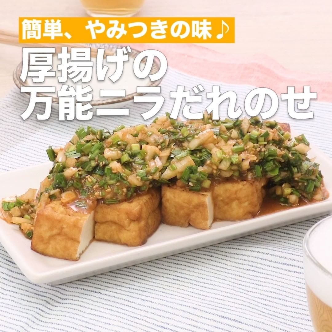 ④<簡単、やみつきの味♪厚揚げの万能ニラだれのせ>