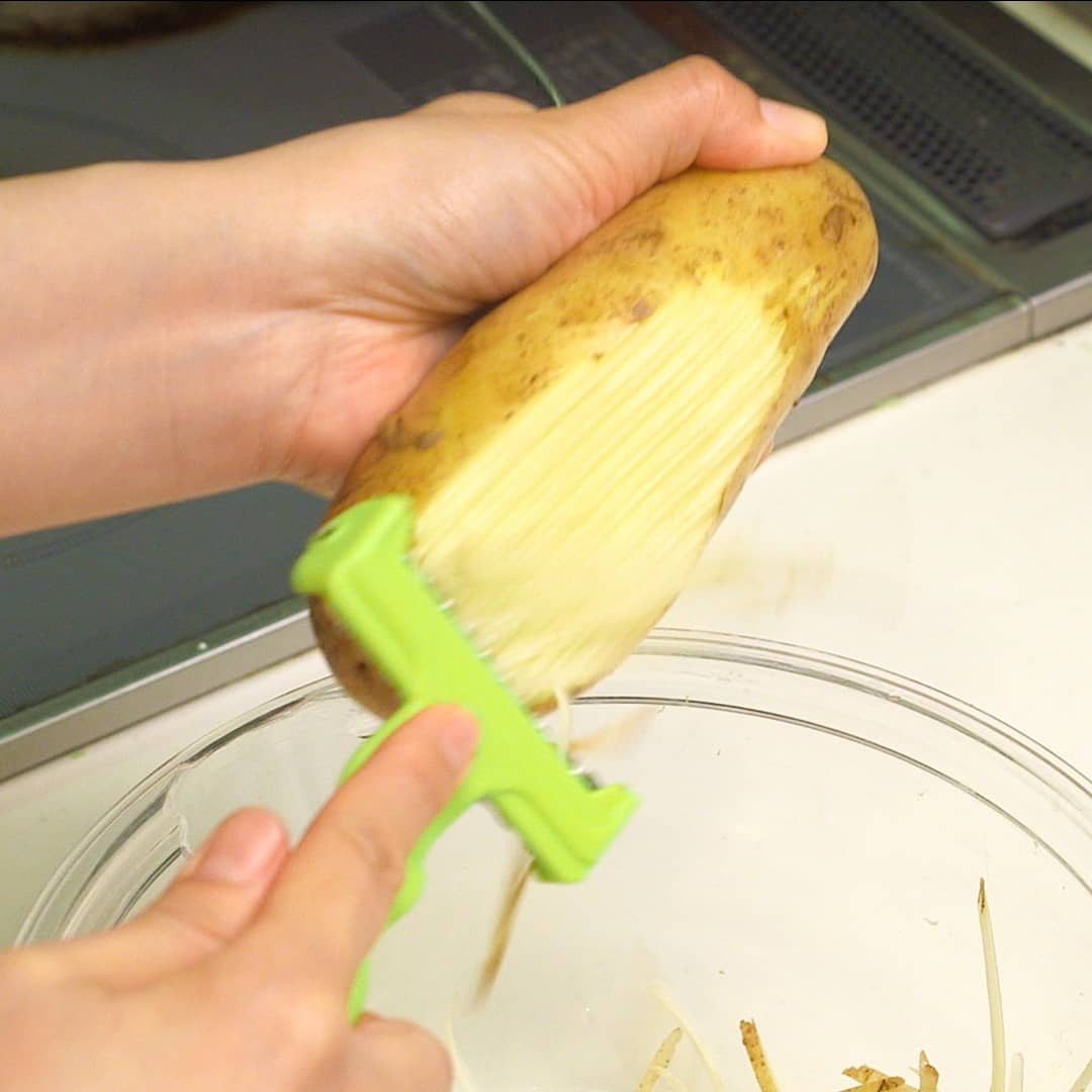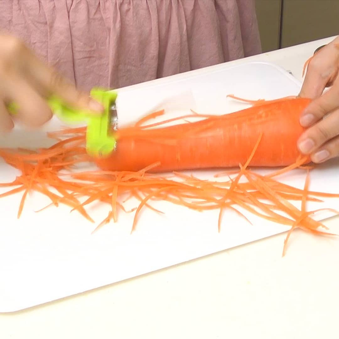 ②にんじん1/2本、じゃがいも1/2個を麺状に細く切る