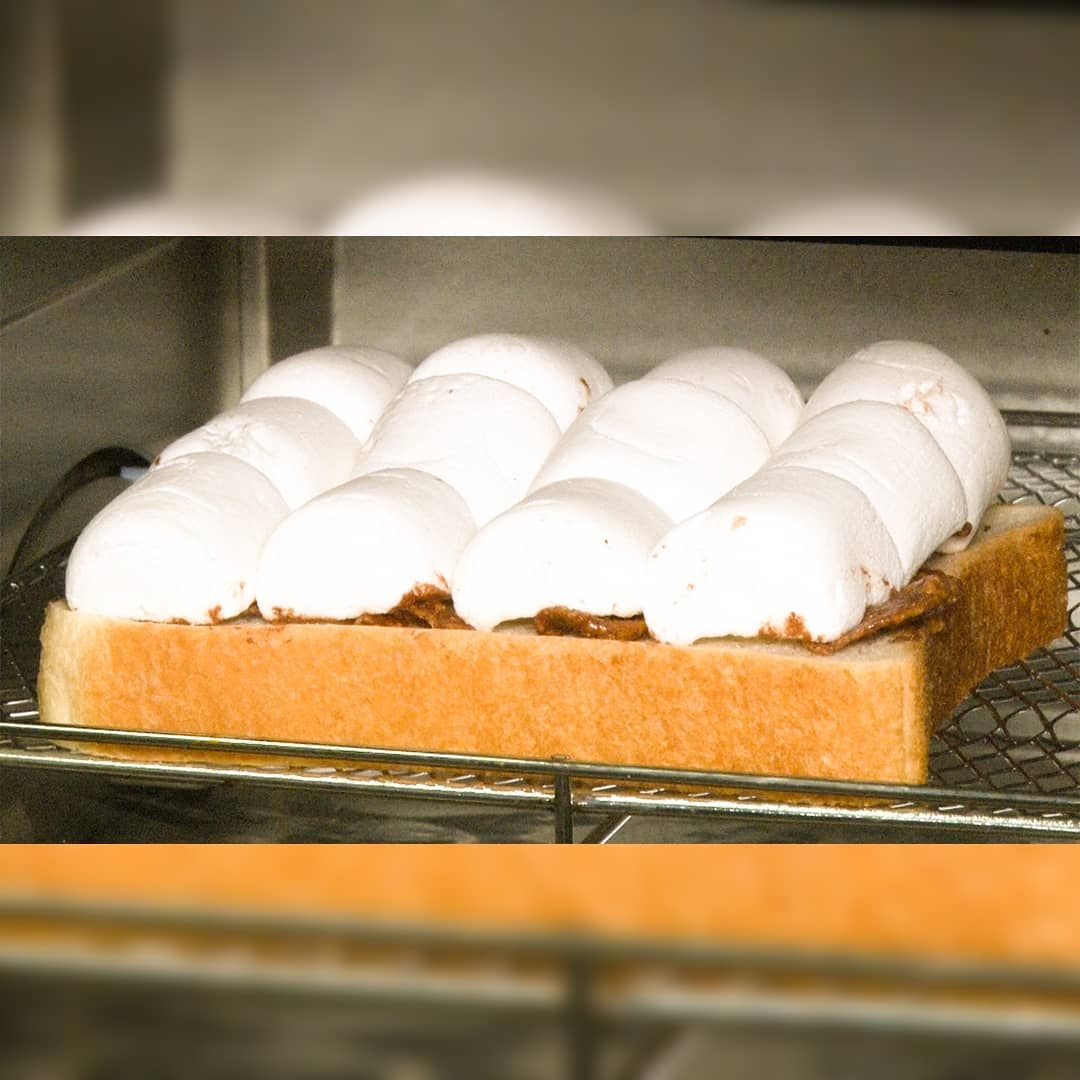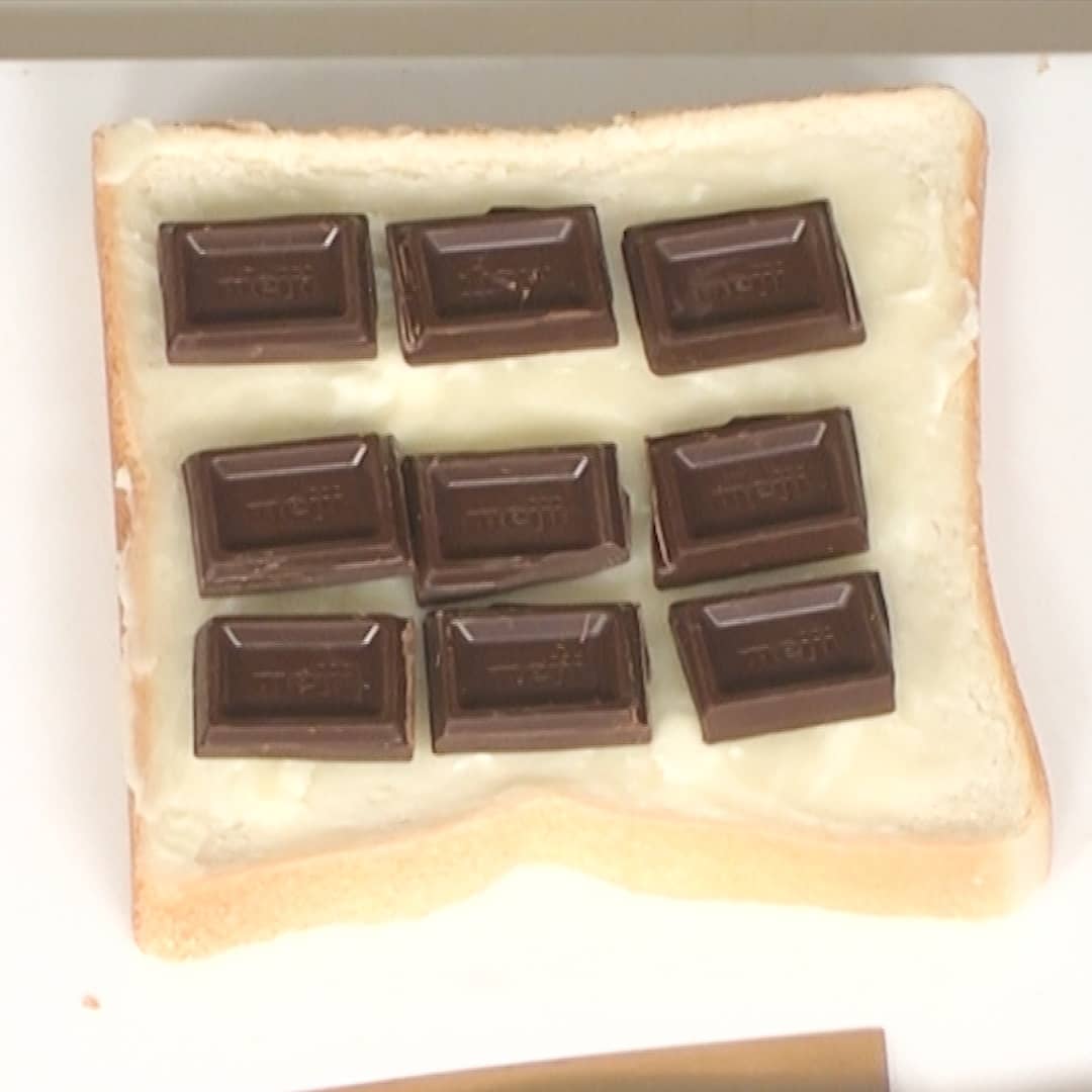 ③板チョコ9ブロックを3列ずつ並べトースターで2分焼く