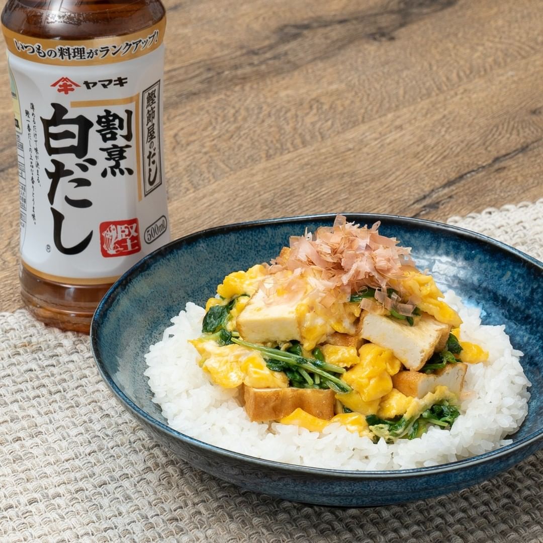 ③割烹白だしで簡単 豆苗と厚揚げのチャンプルー丼