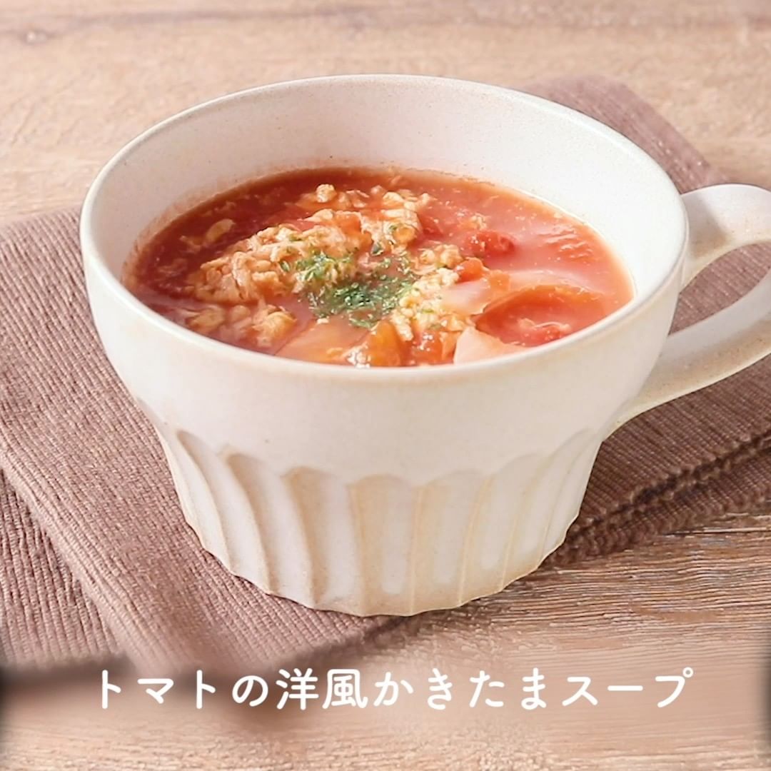 ③トマトの洋風かきたまスープ