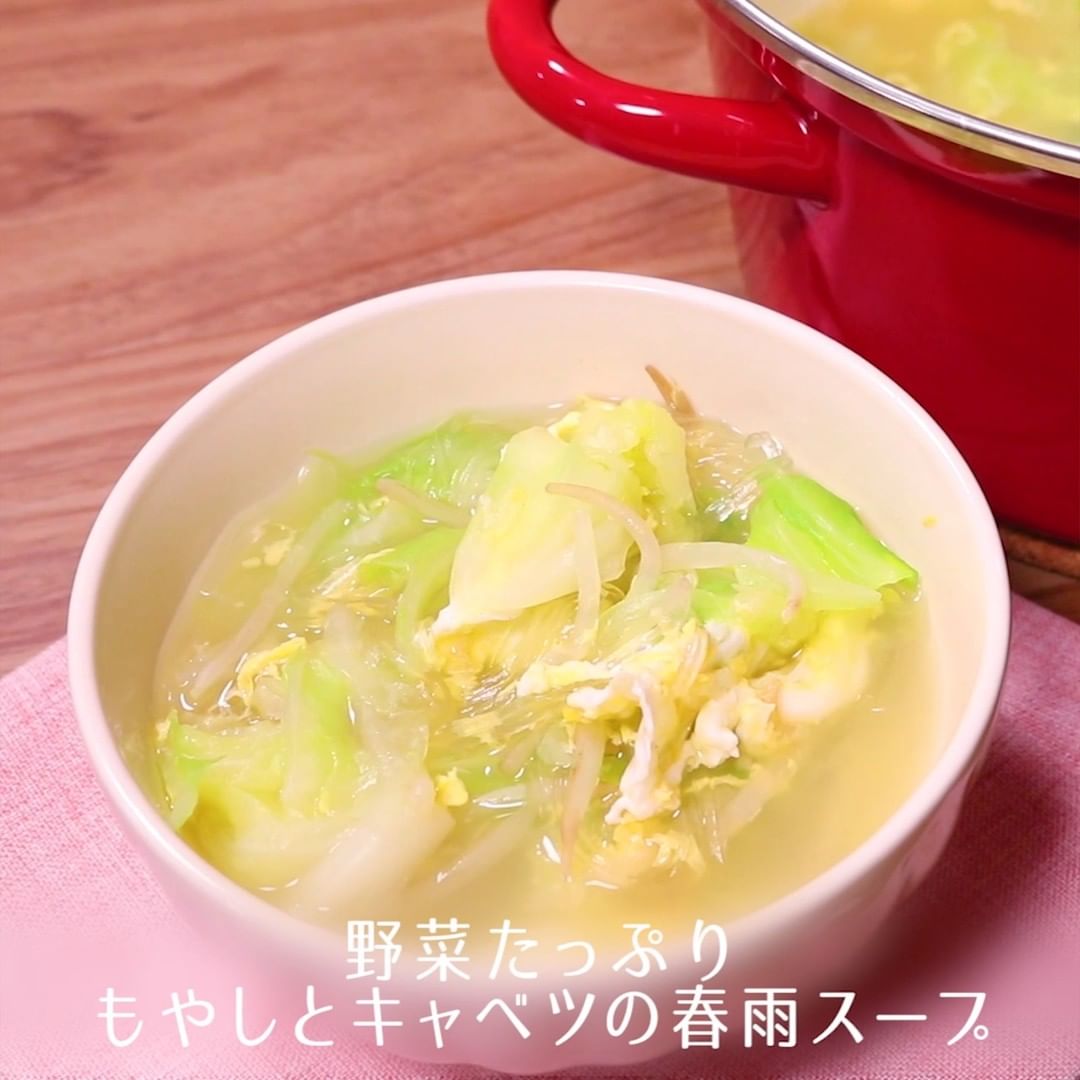 ⑧野菜たっぷり もやしとキャベツの春雨スープ