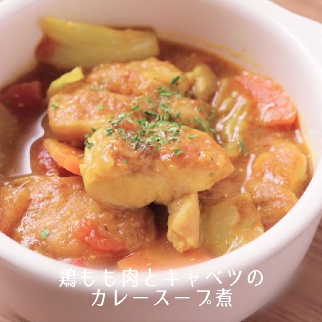 ④鶏もも肉とキャベツのカレースープ煮