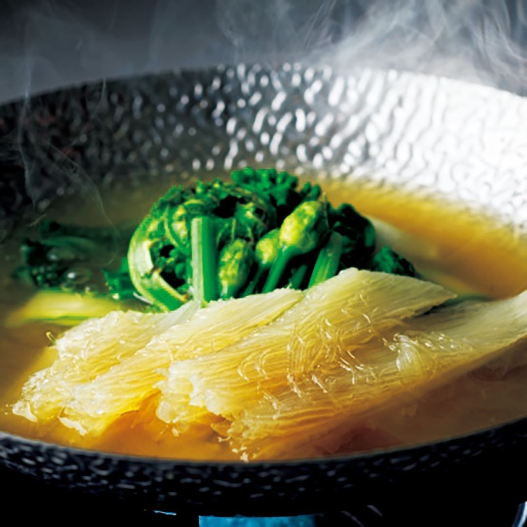 金華ハムと老鶏、豚もも肉を蒸してとる上湯スープがフカヒレの食感を際立たせる。