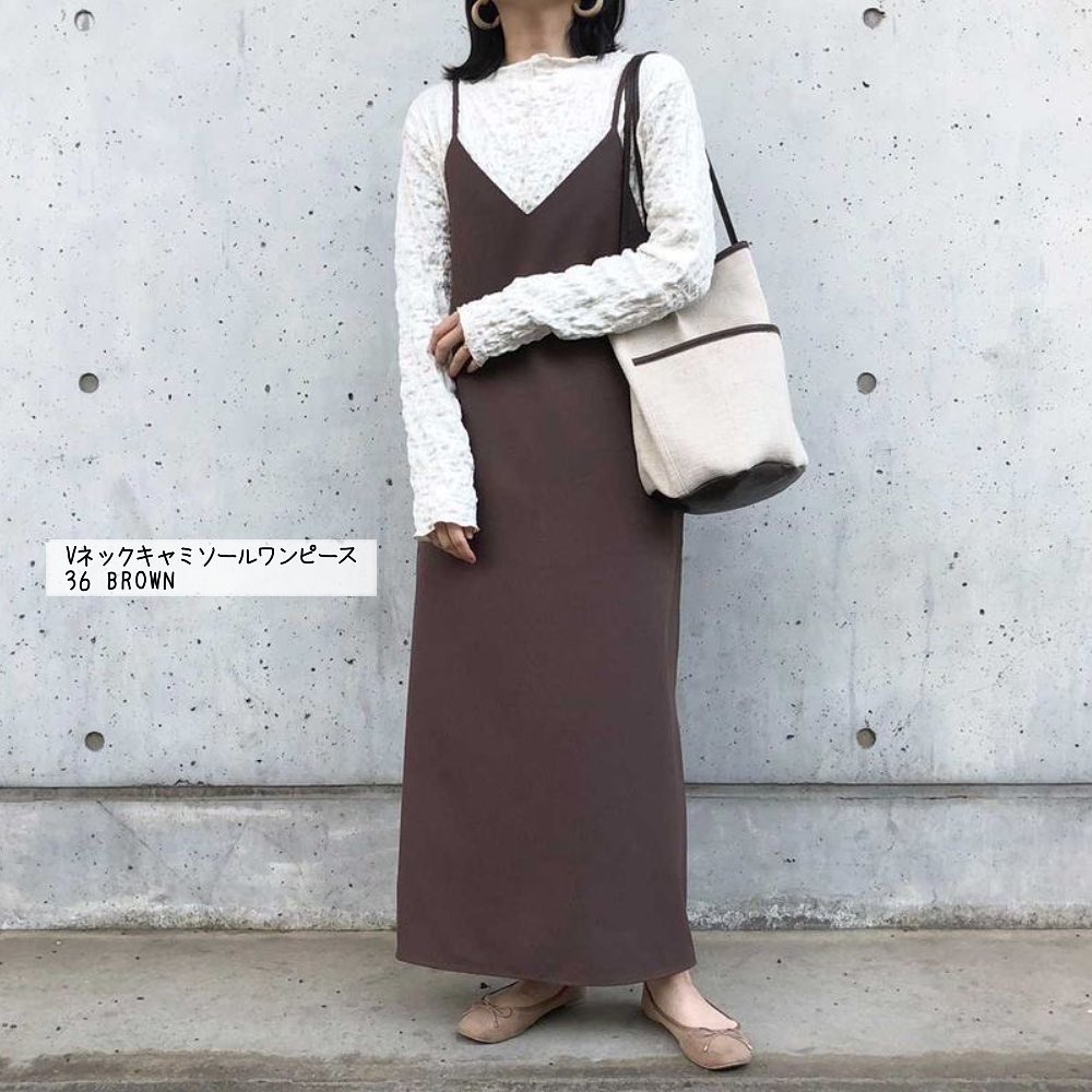 フェミニンカジュアルに、サラッと着られるキャミワンピ✨絶妙なVネックと、緩やかなロング丈が着こなしやすい😘大人っぽい落ち着いたカラバリだから、どのカラーも挑戦しやすくてGOOD👍肌触りの良い質感が、軽い着心地なのも嬉しいポイントですね😉☝️是非、チェックしてみてくださいね💁♀️💕