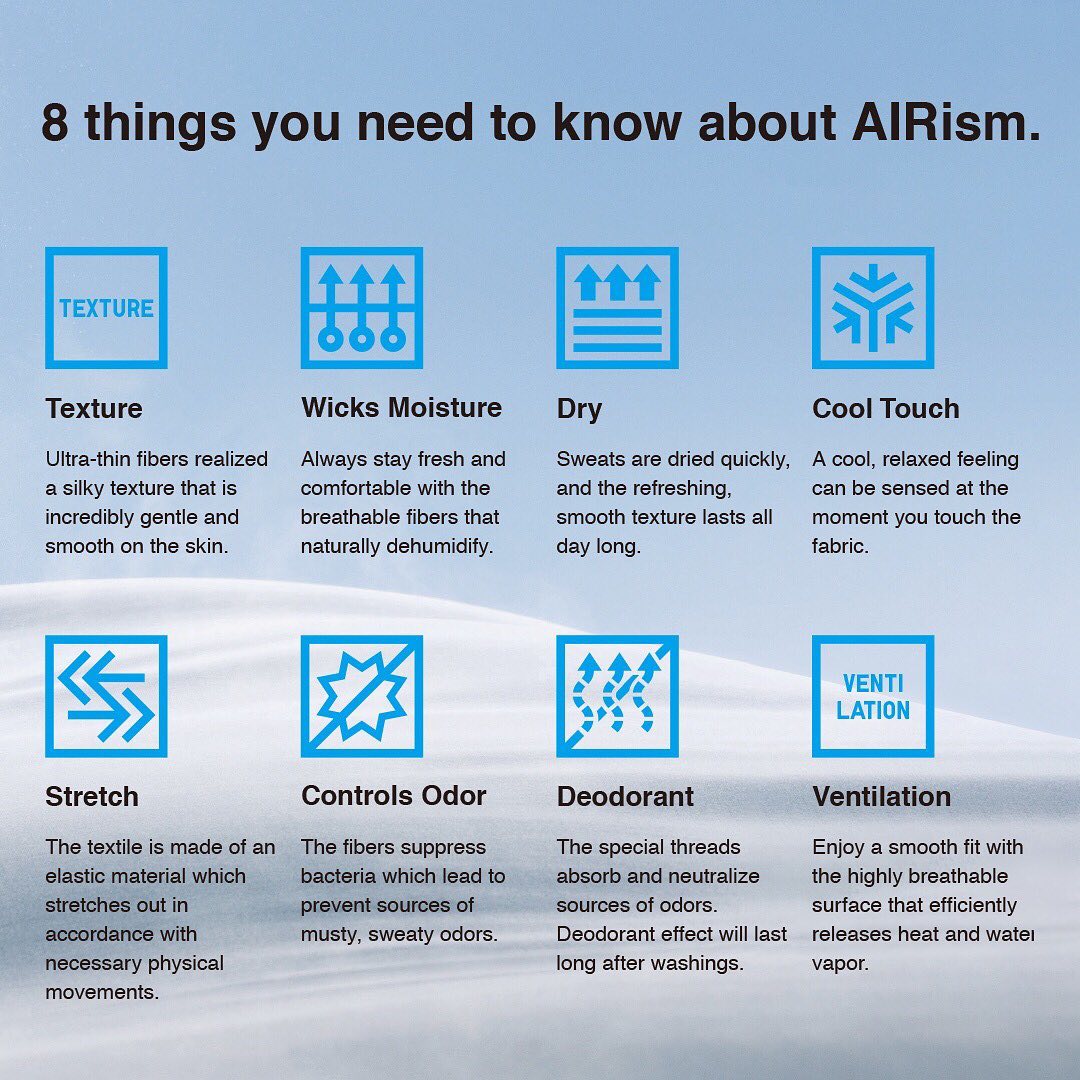 #AIRism is comfort conditioning technology that diffuse wetness and release heat for retaining a comfort from sweats. The texture is absolutely addictive once you try it on. Give it a try to experience the finest silky touch!
