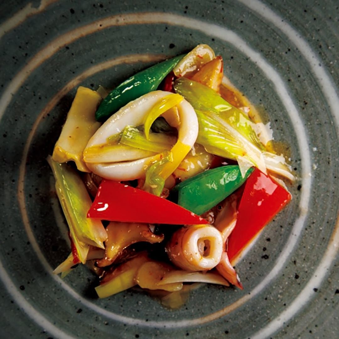 写真②▷「イカと野菜の発酵唐辛子炒め」は旨みと辛みが融合