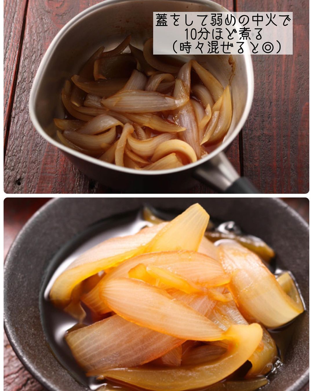 ➋鍋に【A】を加えて強火にかけ、沸騰したら1を入れ、蓋をして弱めの中火で10分ほど煮る。玉ねぎがクタっとなったら完成!