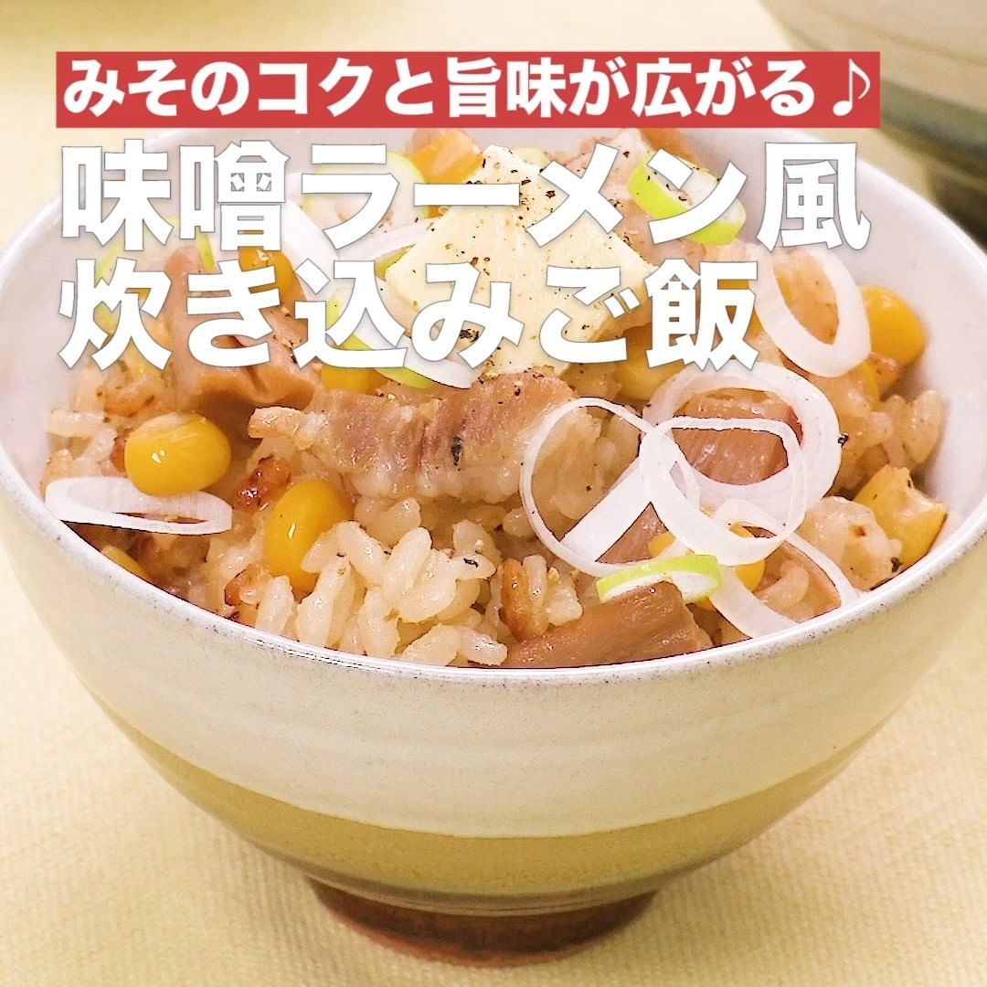 ④<みそのコクと旨味が広がる♪味噌ラーメン風炊き込みご飯>