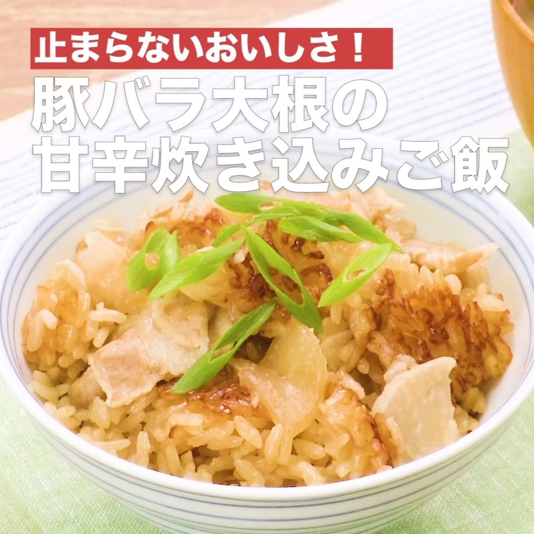 ⑦<止まらないおいしさ!豚バラ大根の甘辛炊き込みご飯>