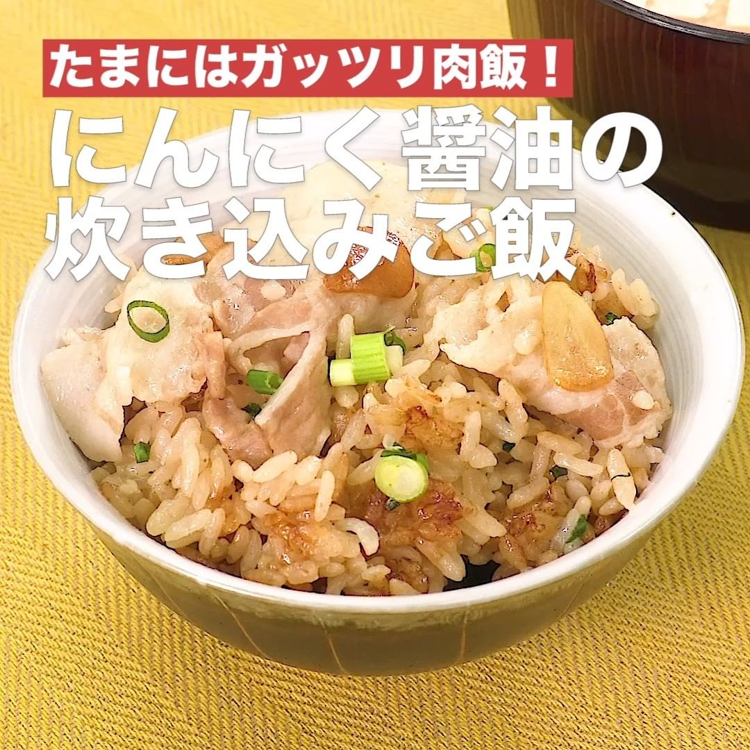 ⑤<たまにはガッツリ肉飯!にんにく醤油の炊き込みご飯>