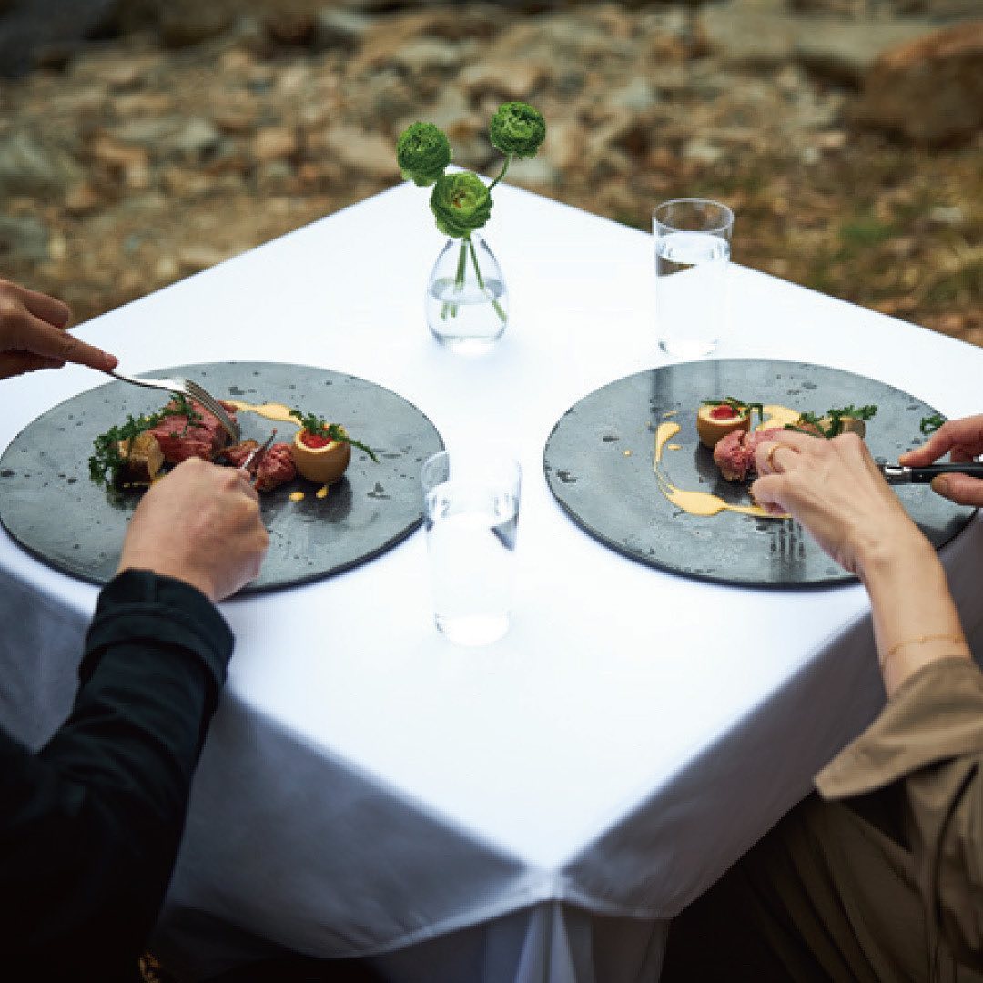 福島の食材を用いた絶品料理を、選び抜かれた極上のロケーションで味わうという体験型フードツーリズムのフルコースを手がけるのは、東京が誇る超予約困難店『長谷川稔』を率いる長谷川 稔氏。
