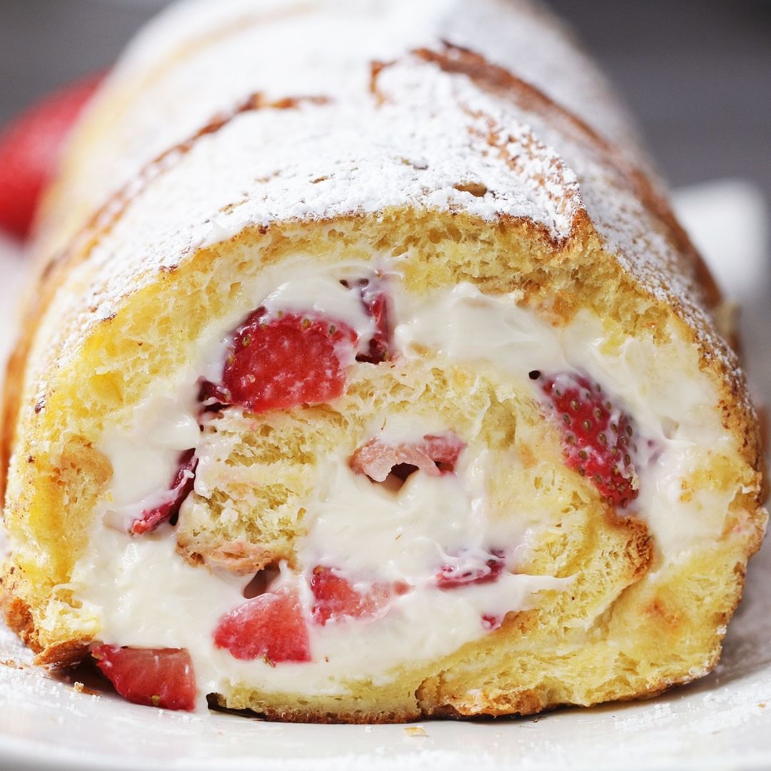 巻いて焼くだけ!いちごのフレンチトーストロール🍓