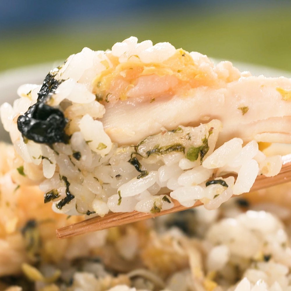 ④炊けたら、ファミチキを切るようによく混ぜたら完成。