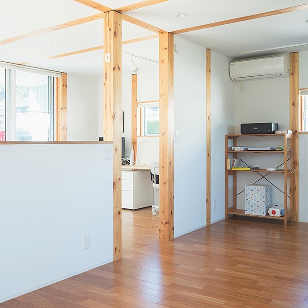 岡山県笠岡市に建つ「木の家」H邸は、陽光の差し込む室内に、お子さまたちが楽しそうに遊ぶ声が響く明るいお宅です。