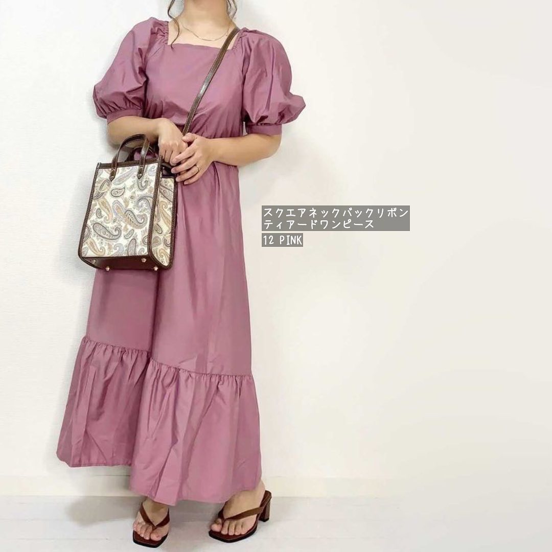 ☑︎スクエアネックバックリボンティアードワンピース(5分袖)