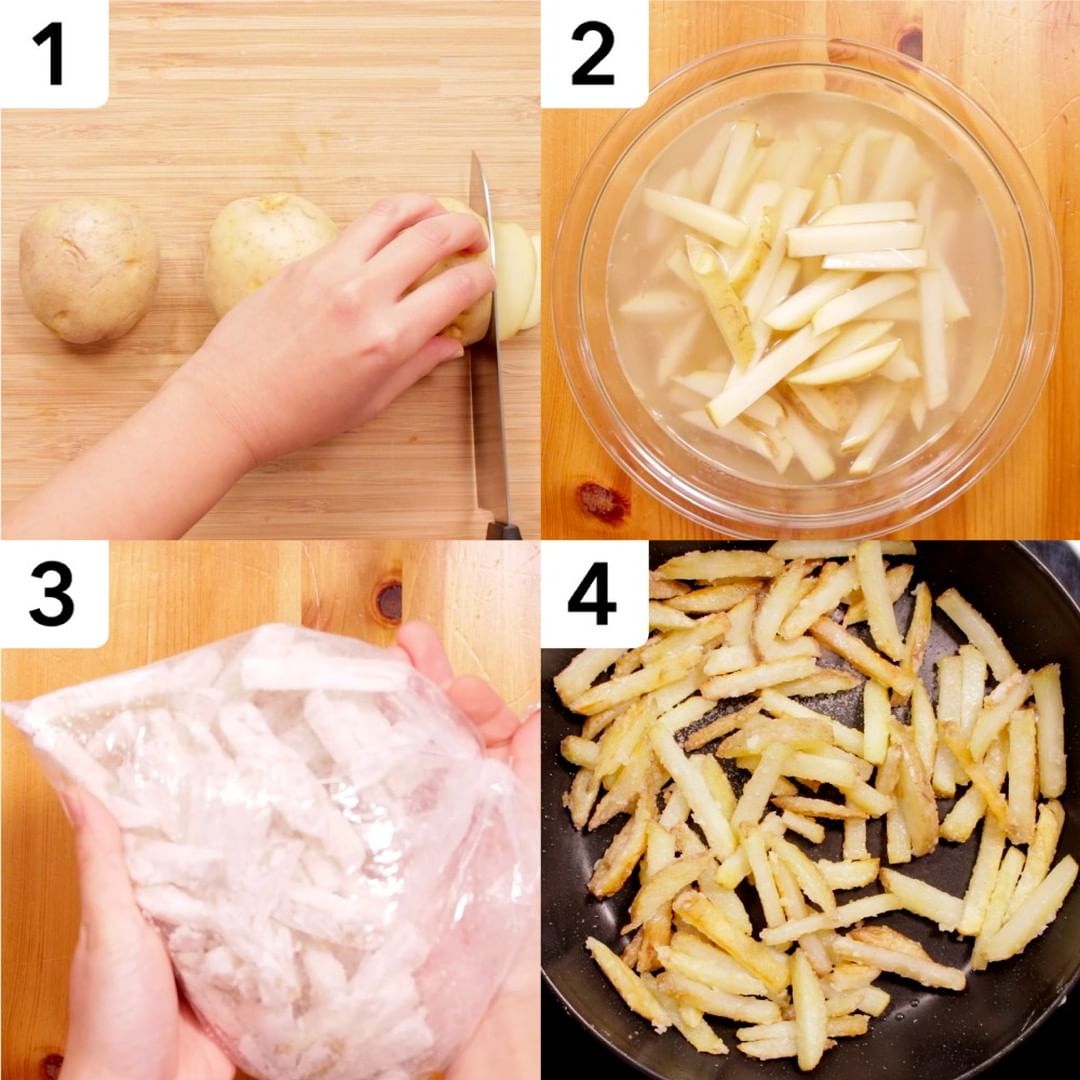 1. じゃがいもを細切りにし、10分程水にさらします。