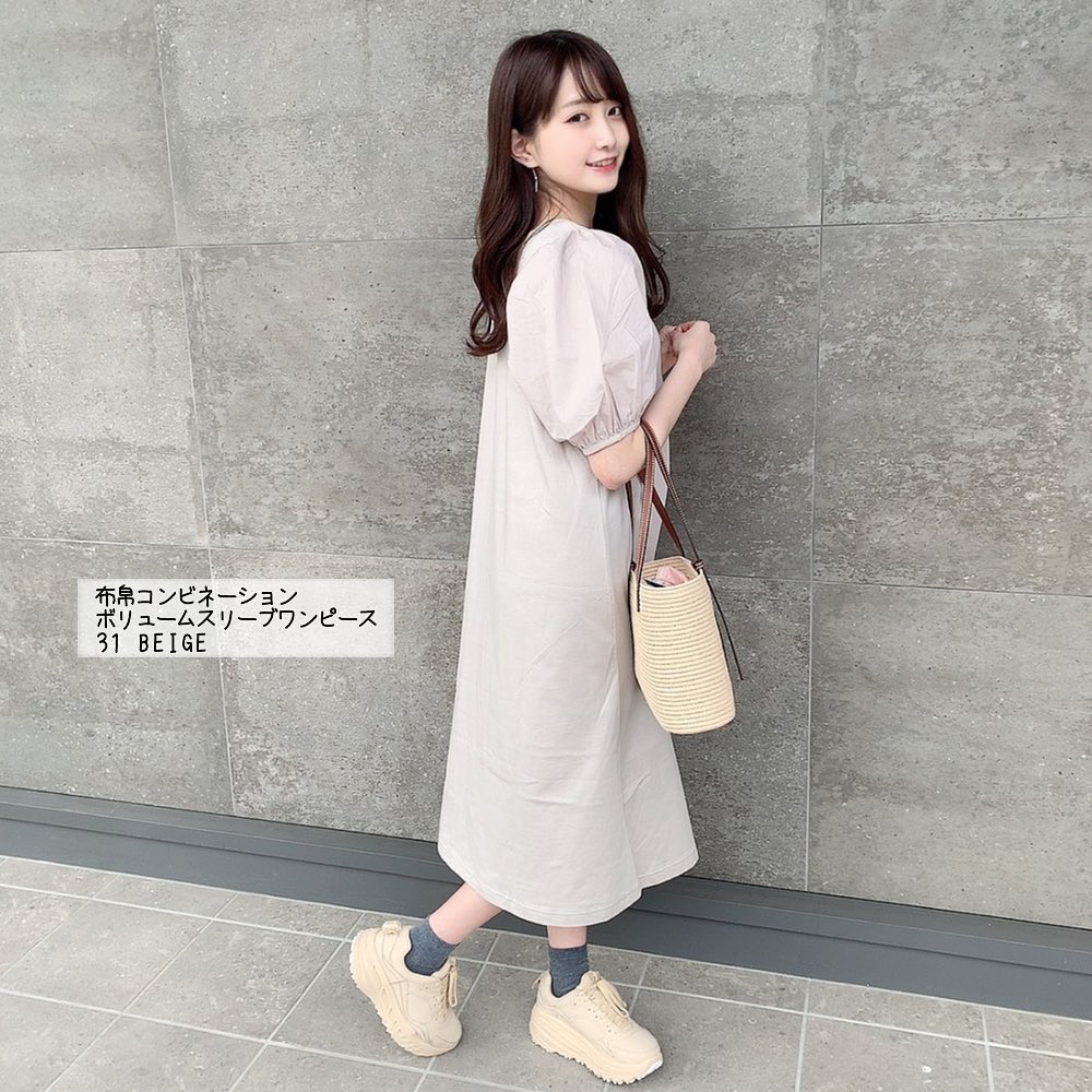 ☑︎布帛コンビネーションボリュームスリーブワンピース(5分袖)