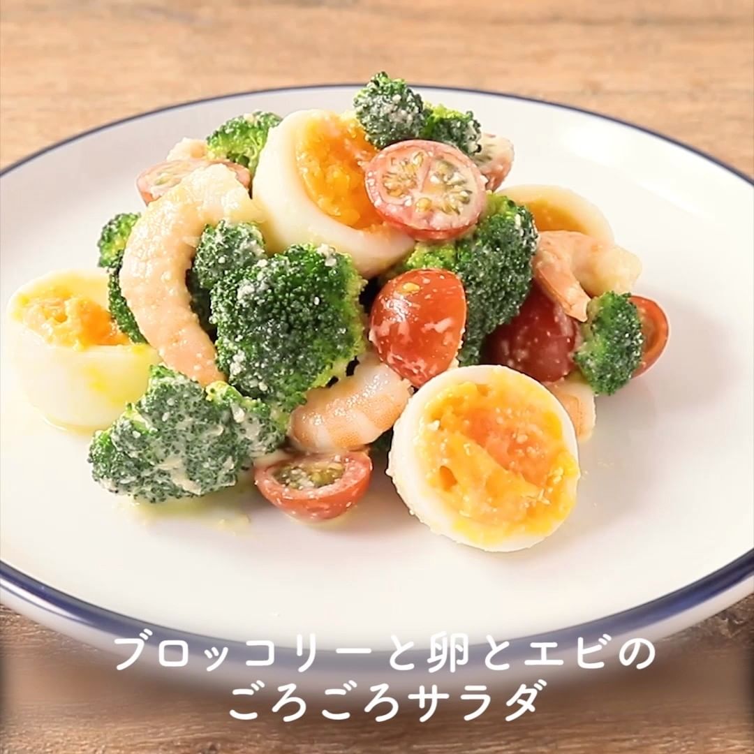①アボカドとブロッコリーのゴロゴロたまごサラダ