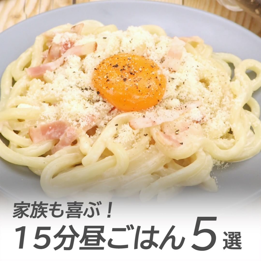 ①<レンジでボウル一つでできる!カルボナーラ風釜玉うどん>
