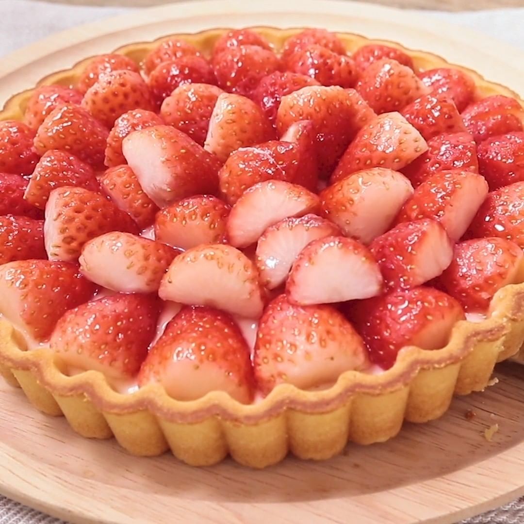 ①まるでお店の仕上がり つやつやイチゴのレアチーズタルト