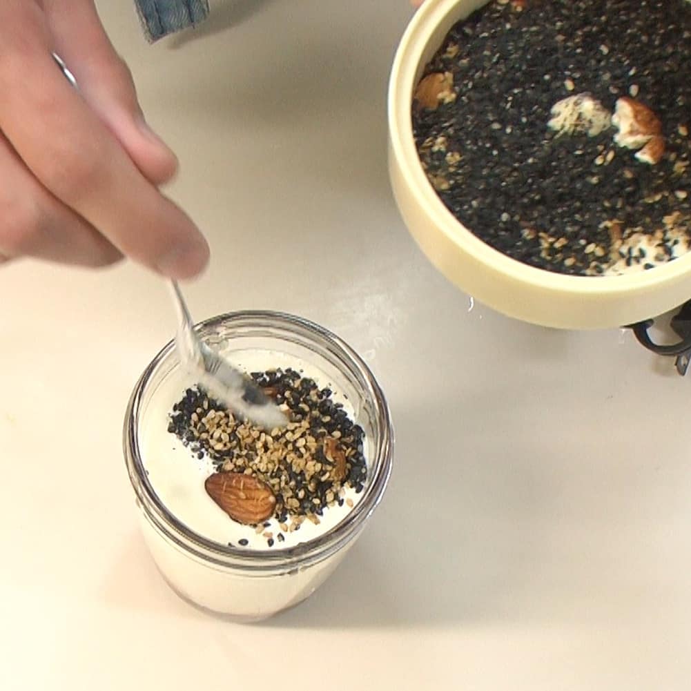 @Kajiyarou Kajiyarou: 『自家製オイルの搾りかすアイスクリーム』 ①はちみつ(大さじ2)卵黄(2個)生クリーム(200cc)ゴマとアーモンドの搾りかすをミルサーで混ぜ合わせる 2021-04-27 『自家製オイルの搾りかすアイスクリーム』 ①はちみつ(大さじ2)卵黄(2個)生クリーム(200cc)ゴマとアーモンドの搾りかすをミルサーで混ぜ合わせる ②アイスクリームメーカーに流し込み、混ぜ合わせる ③最後にお好みでミントをトッピングして完成! #家事ヤロウ #ロバート馬場 #リアル家事 #秘密キッチン #cooking #food Ciao, Nihon.