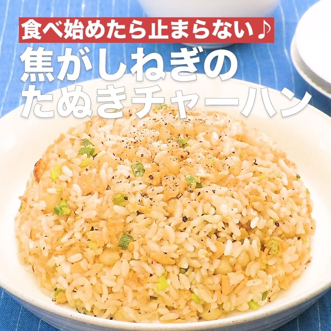 ②<食べ始めたら止まらない♪焦がしねぎのたぬきチャーハン>