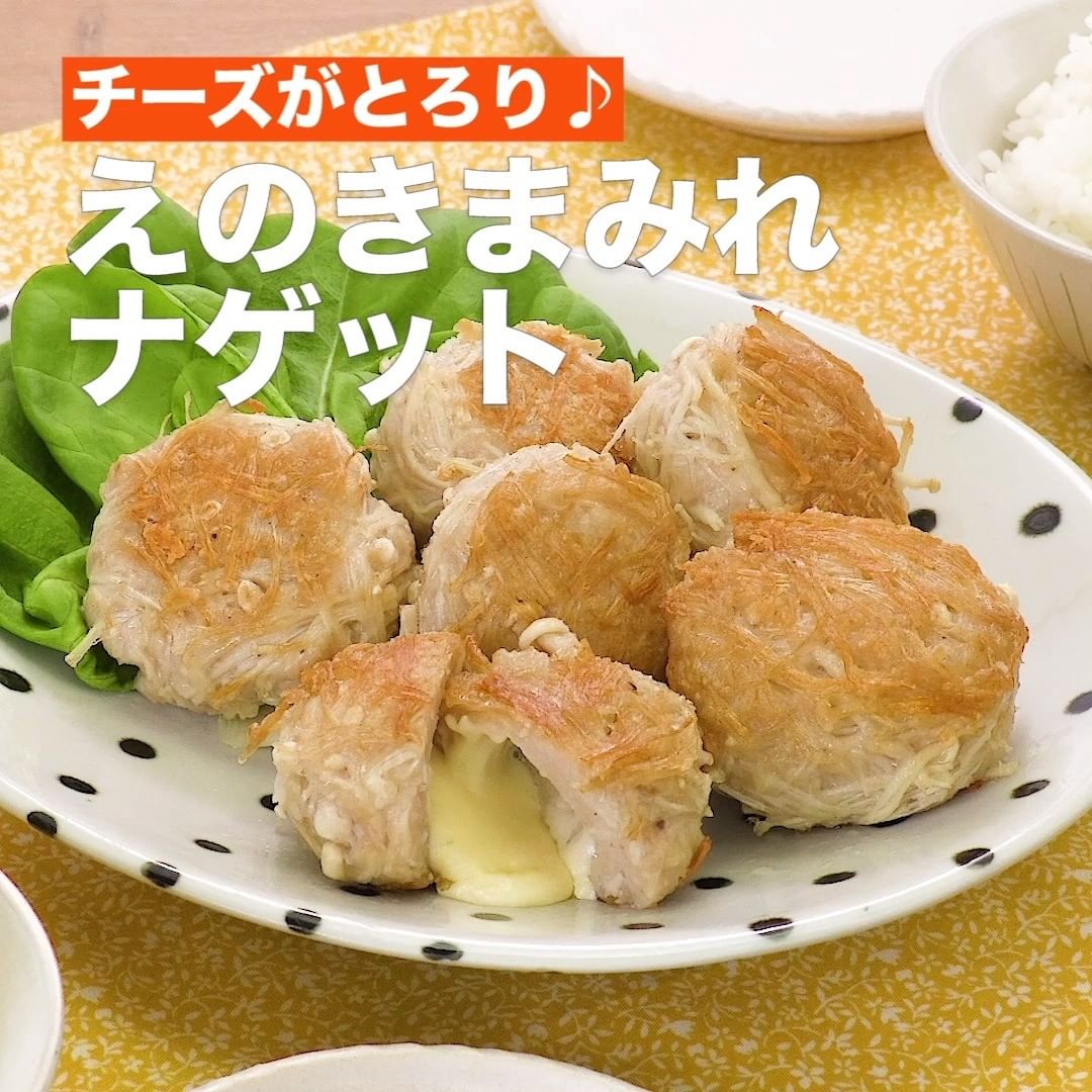 ①<チーズがとろり♪えのきまみれナゲット>