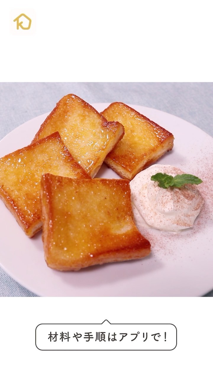 クイニーアマン風トーストのご紹介です。クイニーアマンのおいしさを気軽に楽しめるように食パンでアレンジした一品です。バターがじゅわっと染み込んだ食パンにグラニュー糖をたっぷり絡めて仕上げました。少ない材料で簡単に作れるので、朝食やおやつにもおすすめですよ。ぜひお試しくださいね。