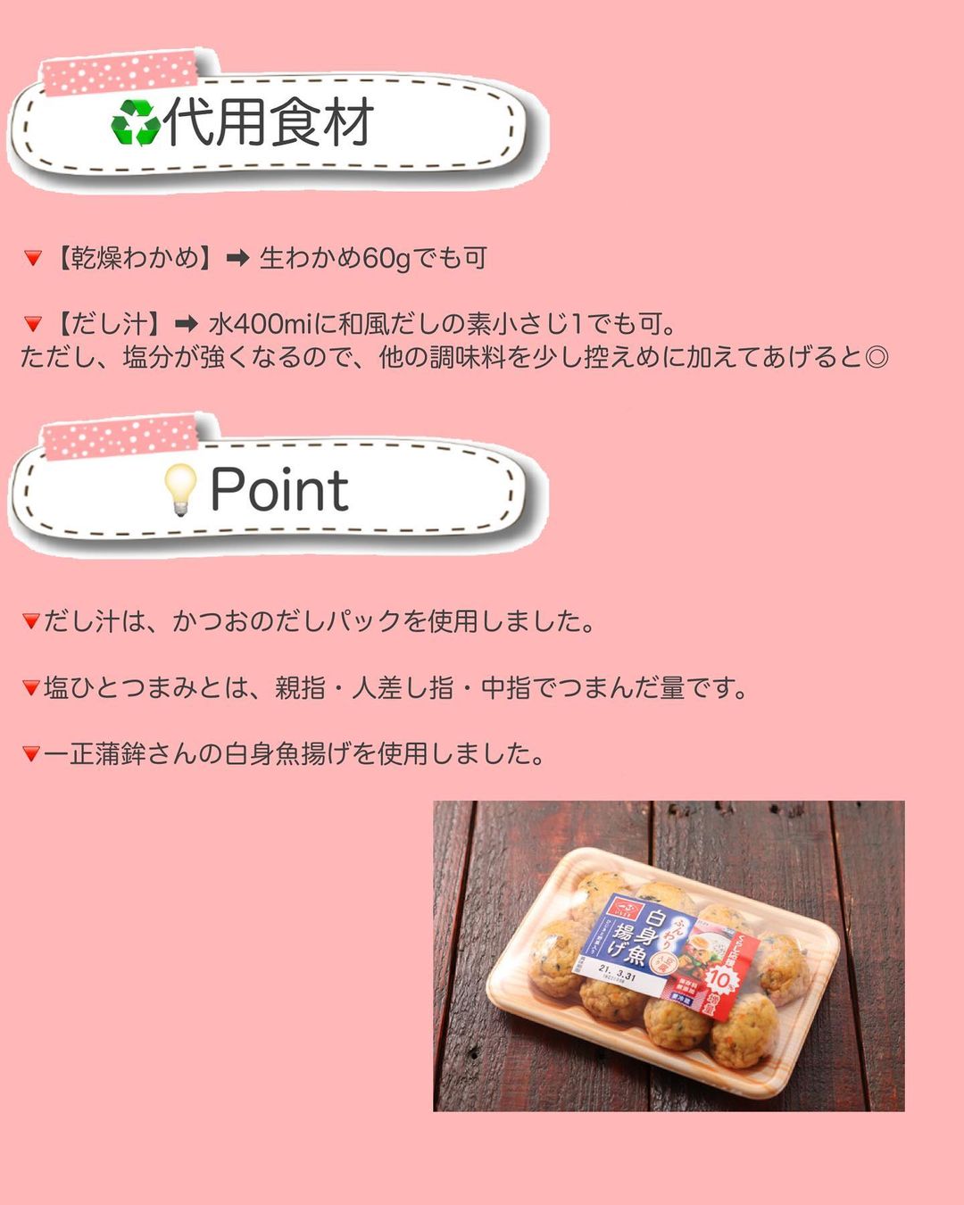 ➌わかめを加え、さらに2分ほど煮たら火を止める。