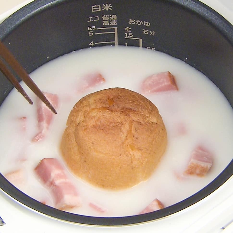 @Kajiyarou Kajiyarou: 『カルボナーラ飯』 ①お釜にお米(3合)、鶏がらスープの素(大さじ1)塩(小さじ1)牛乳(100ml)水(500ml)を入れ、軽く混ぜる ②シューク 2021-04-27 『カルボナーラ飯』 ①お釜にお米(3合)、鶏がらスープの素(大さじ1)塩(小さじ1)牛乳(100ml)水(500ml)を入れ、軽く混ぜる ②シュークリーム(1個)をまるごと入れ、細切りしたベーコン(150g)を加えて炊く ③炊き上がったら全体をよく混ぜ、ブラックペッパー、パセリ(適量)をかけて完成! ★ギャル曽根さん考案のレシピ! ★シュークリームの甘さは残らず、濃厚なカルボナーラのようなコクを生み出します! #家事ヤロウ #ギャル曽根 #炊き込みご飯 #cooking #food Ciao, Nihon.