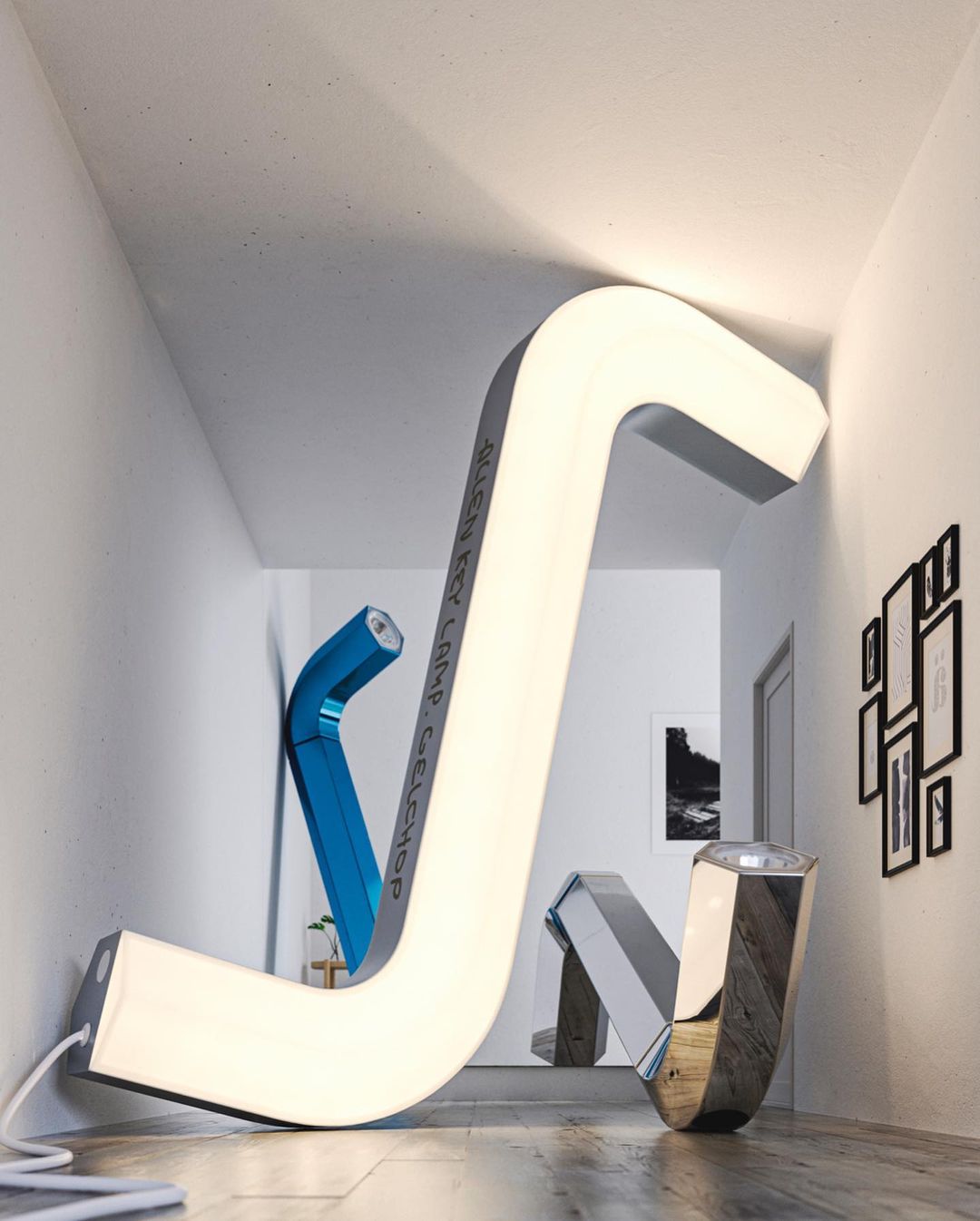 日本で活動する3D造形グループGELCHOPは、イケアの一番のアイコンアイテムとも言える六角レンチに独自のひねりを加え、テーブルランプと2色の懐中電灯をつくりました。