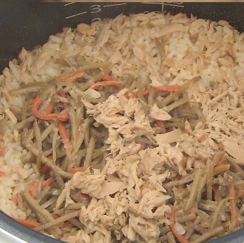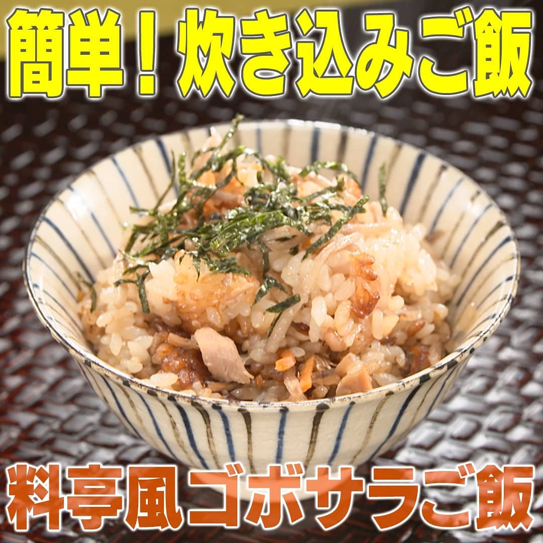 @Kajiyarou Kajiyarou: 『ゴボサラ炊き込みご飯』 ① お釜にお米(2合)ごぼうサラダ(2袋/約140g)ツナ缶(汁ごと1缶)、しょうゆ、酒、みりん(各大さじ1)塩(ひとつまみ) 2021-04-27 『ゴボサラ炊き込みご飯』 ① お釜にお米(2合)ごぼうサラダ(2袋/約140g)ツナ缶(汁ごと1缶)、しょうゆ、酒、みりん(各大さじ1)塩(ひとつまみ)を入れる ② 2合の目盛りまで水を入れて炊く ③ 炊き上がったらよくかき混ぜてお茶碗に盛り、刻みのり(適量)をかけたら完成! ★マヨネーズは炊き込むと酸味が消えコクがアップ! ★お使いの炊飯器の説明に従って調理してください #家事ヤロウ #炊き込みご飯 #cooking #food Ciao, Nihon.