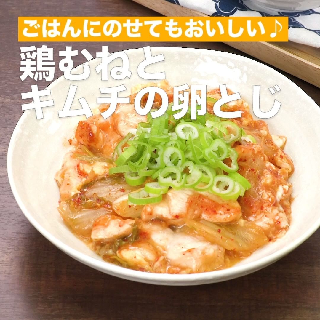 ②<ごはんにのせてもおいしい♪鶏むねとキムチの卵とじ>