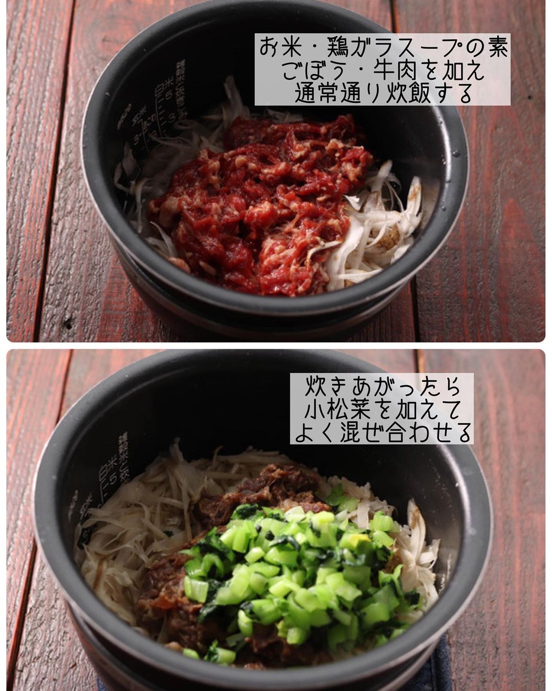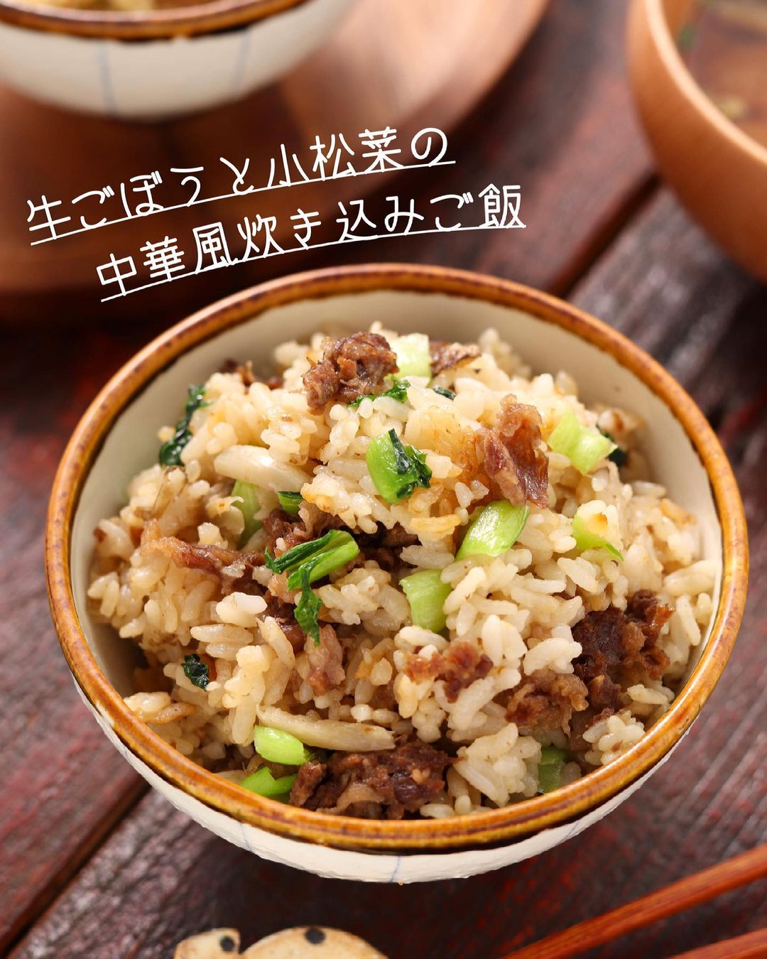 𓎩 #牛ごぼうと小松菜の中華風炊き込みご飯