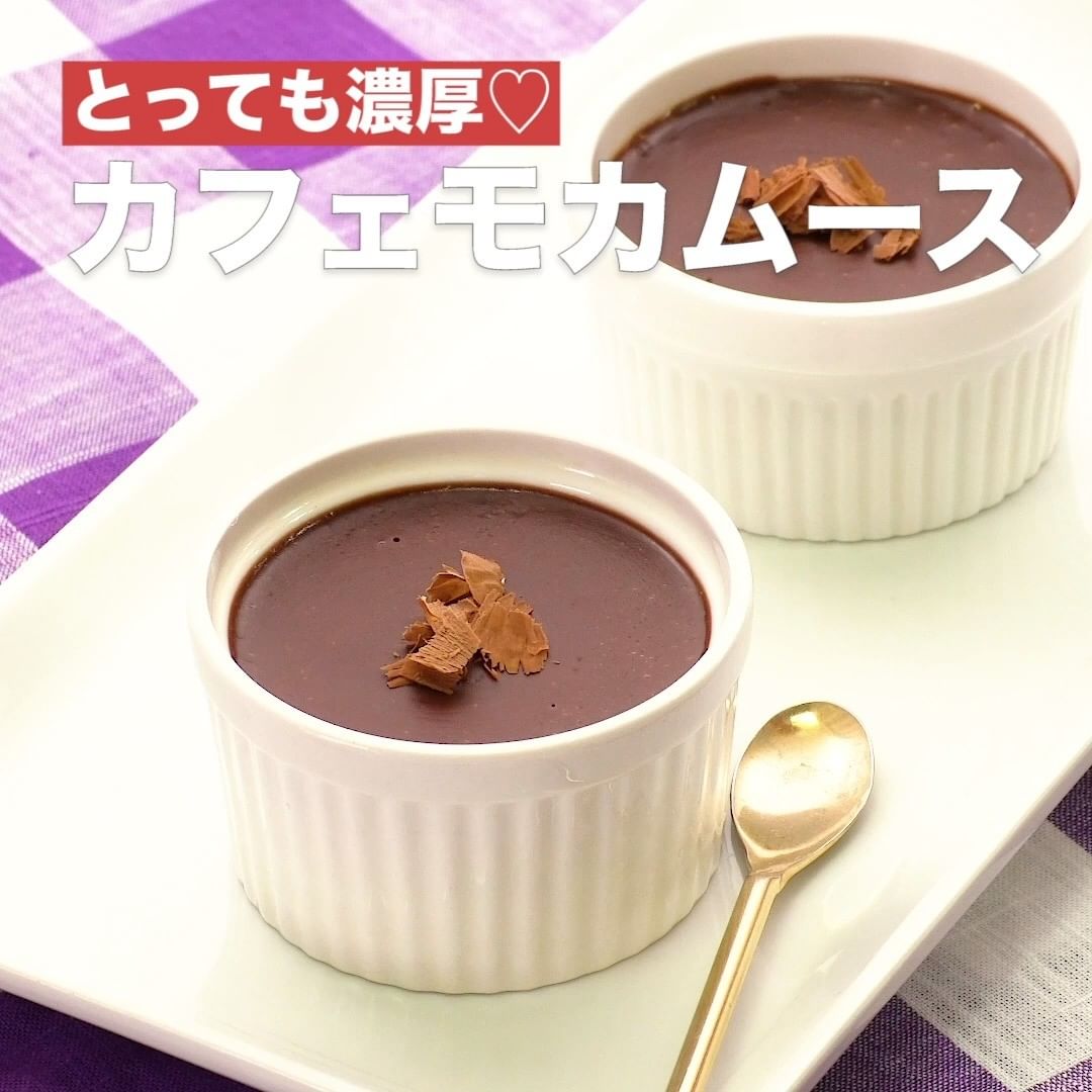 (1)【ムース】鍋に牛乳を入れ、中火で熱し、小さな泡が立ってきたら弱火にする。コーヒー、マシュマロを順に加えてその都度よく混ぜて溶かす。(ビターに仕上げたい方は、チョコレートをビターチョコレートにし、インスタントコーヒーを大さじ3(18g)に増やしてお作りください。)