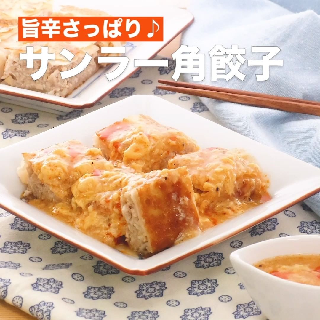 (5)ボウルに酢、しょうゆを入れて混ぜる(酢じょうゆ)。餃子に酢じょうゆを添える。(お好みでラー油を添えてもおいしいです。)