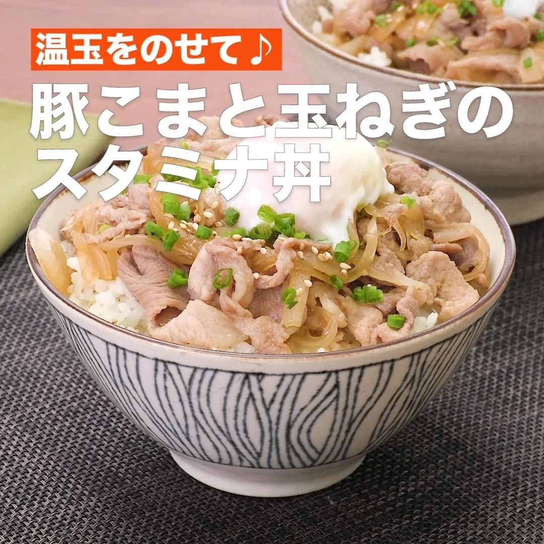 ⑧<温玉をのせて♪豚こまと玉ねぎのスタミナ丼>