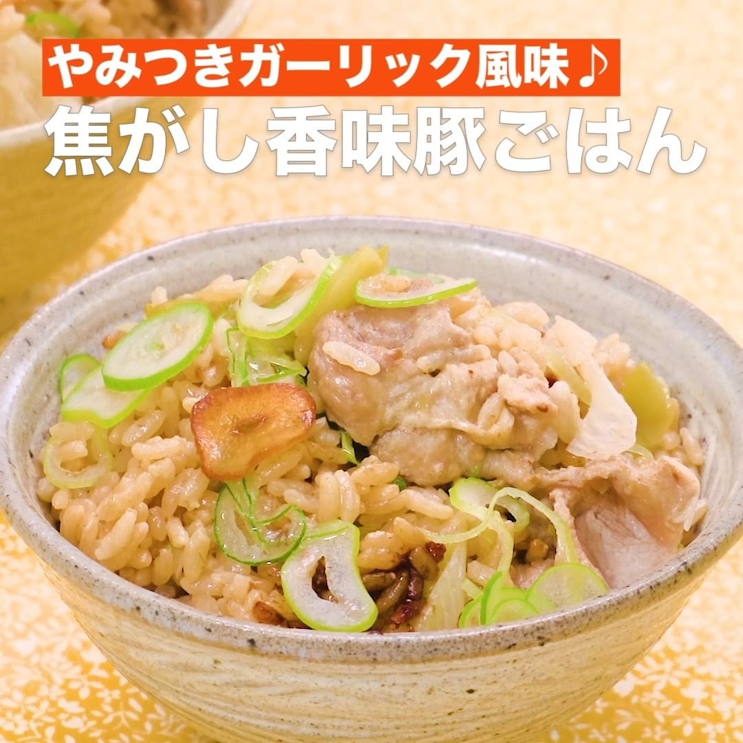 ⑤<やみつきガーリック風味♪焦がし香味豚ごはん>