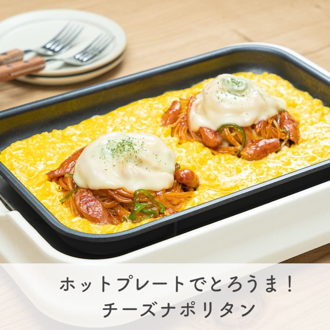 ホットプレートでとろうま!チーズナポリタンのご紹介です。普通のパスタを、低糖質の「ポポロスパCarbOFF」に変更するだけで、糖質を抑えることができますよ。ホットプレートがあれば、パスタをゆでてそのまま食卓に出せるので、手軽に作れておすすめです!家族でホットプレートを囲んで、楽しい時間を過ごしてみてくださいね。