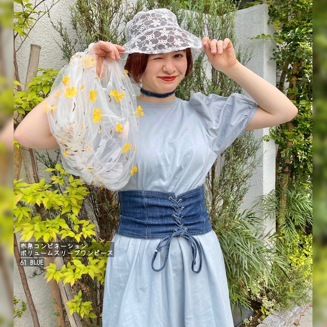 ☑︎布帛コンビネーションボリュームスリーブワンピース(5分袖)