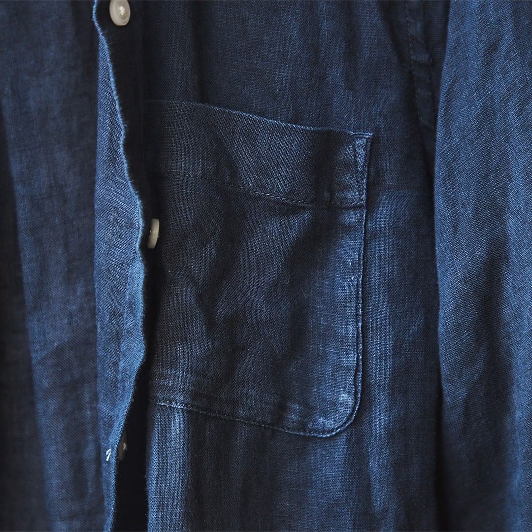 「麻の手触りや質感が好きで、白か紺を着用することが多いです。ボトムによってラフにもなるし、キチンと感も出るところがいい。なので、旅先にも重宝しています。」
