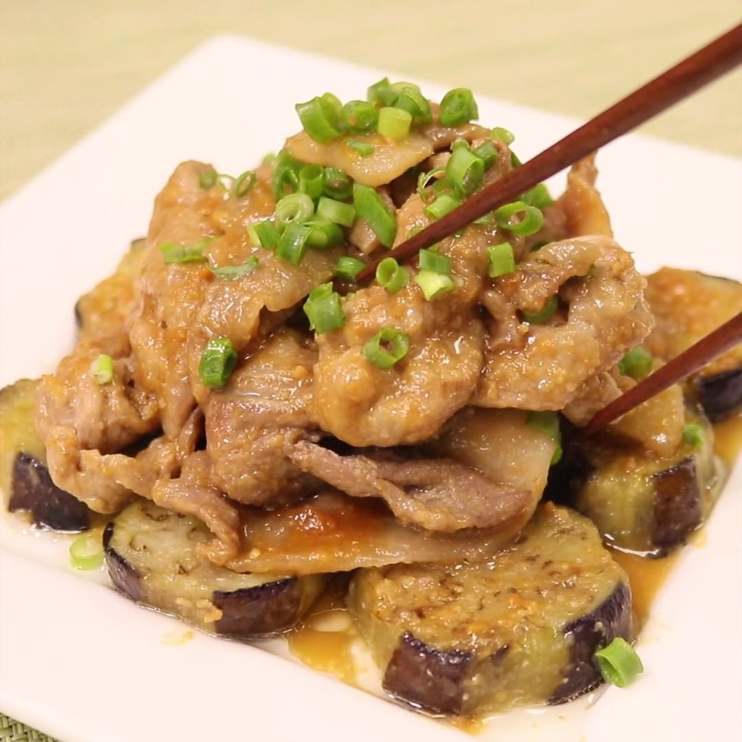 ⑤万能味噌だれで作る!豚肉とナスの味噌炒め